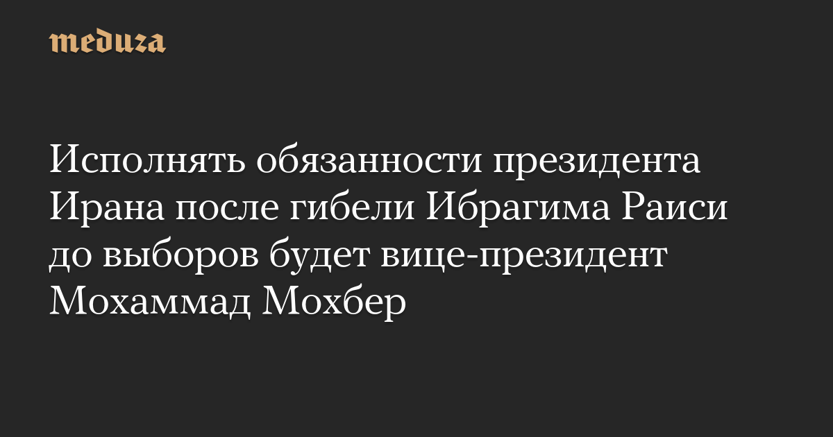 Исполнять обязанности президента Ирана будет вице-президент Мохаммад Мохбер. Такой порядок, пишет Reuters, предусмотрен Конституцией страны. Одобрить кандидатуру исполняющего обязанности президента должен Верховный лидер Ирана аятолла Али Хаменеи.