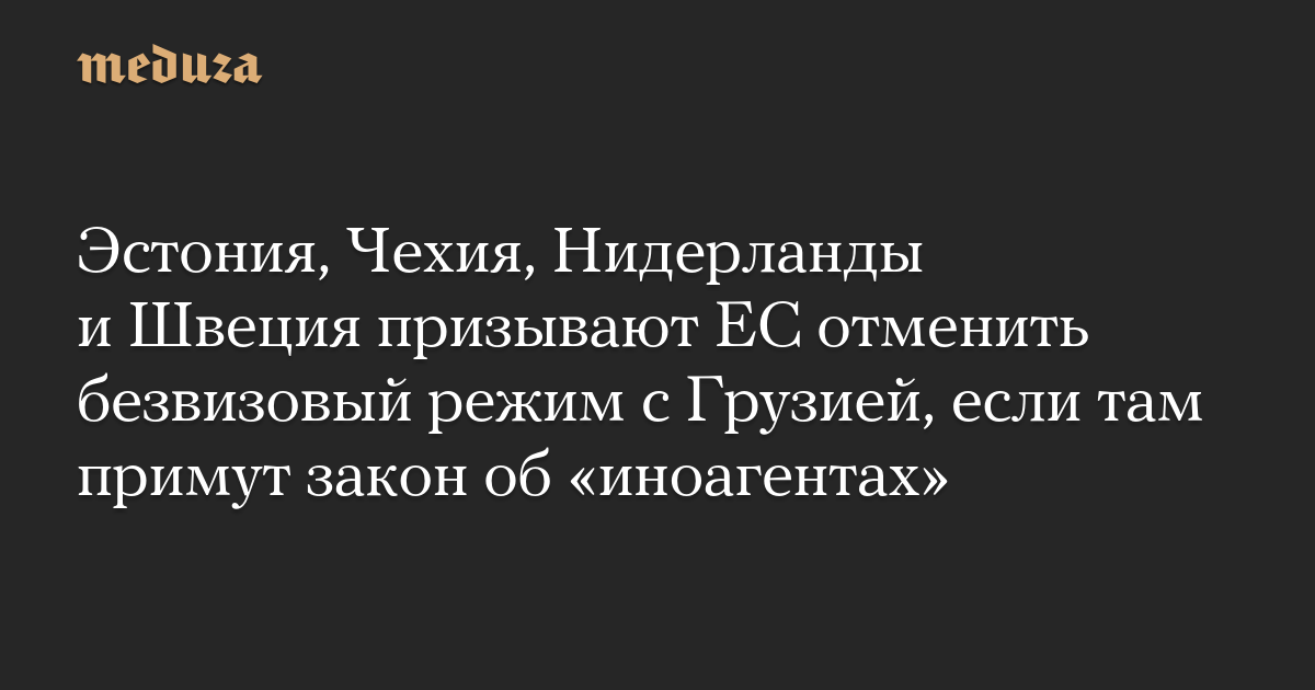 Четыре страны Евросоюза — Эстония, Чехия, Нидерланды и Швеция — призывают власти ЕС ввести санкции в отношении Грузии, если там будет принят закон об «иноагентах».