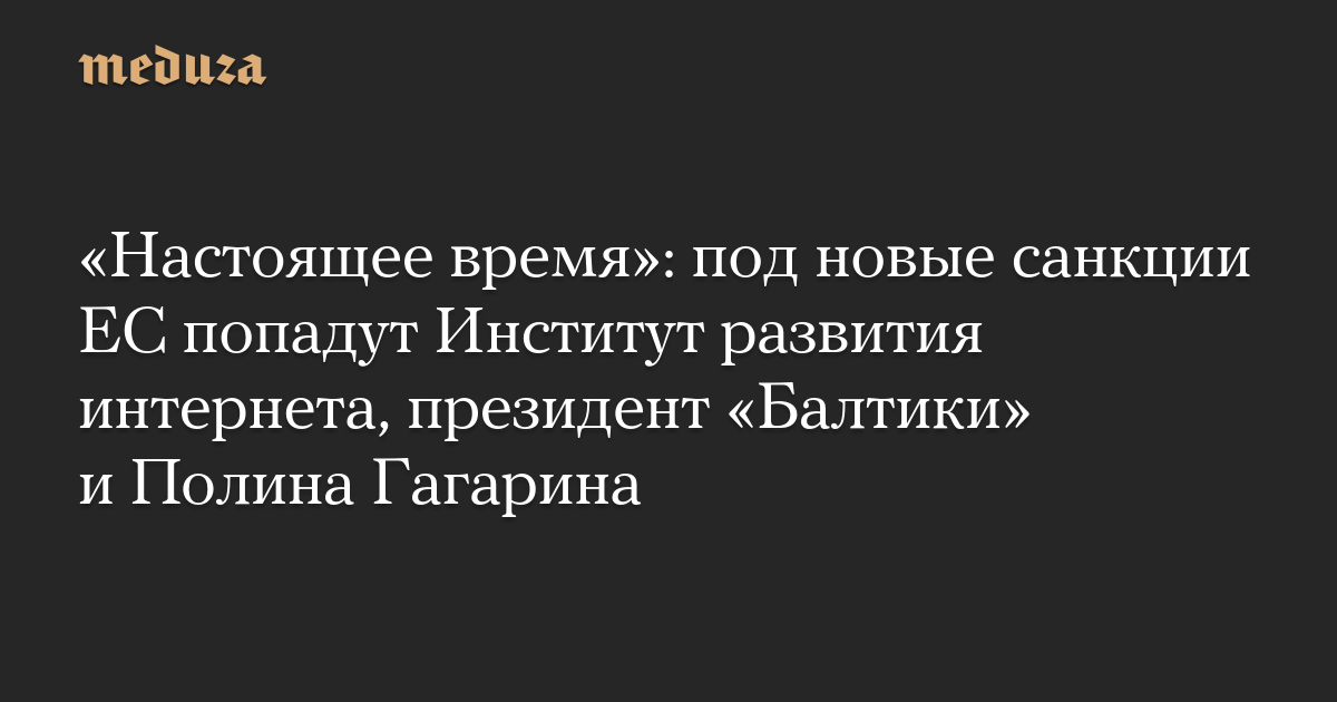 «Настоящее время»: под новые санкции ЕС попадут Институт развития интернета, президент «Балтики» и Полина Гагарина