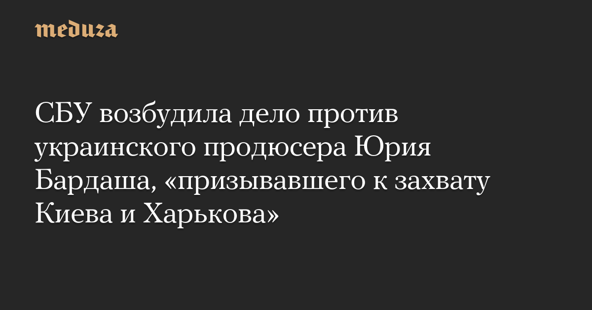 Служба безопасности Украины (СБУ) объявила о подозрении продюсеру и музыканту Юрию Бардашу, который, по версии следствия, «сбежал в Россию и призывает к захвату Киева и Харькова».