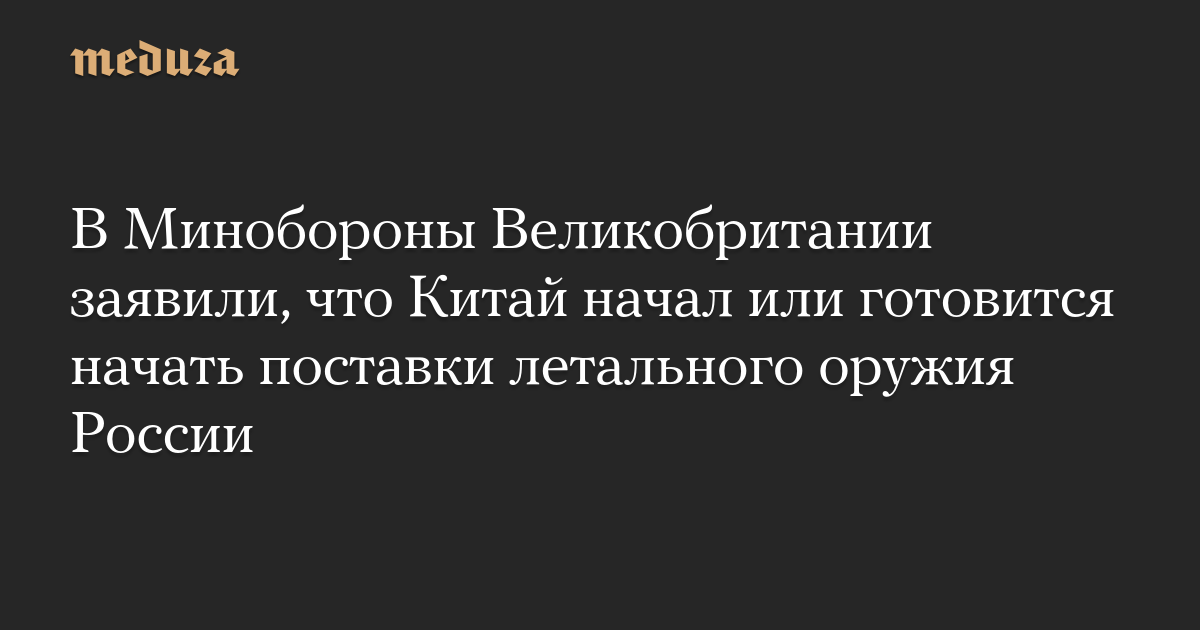 В Минобороны Великобритании заявили, что Китай начал или готовится начать поставки летального оружия России