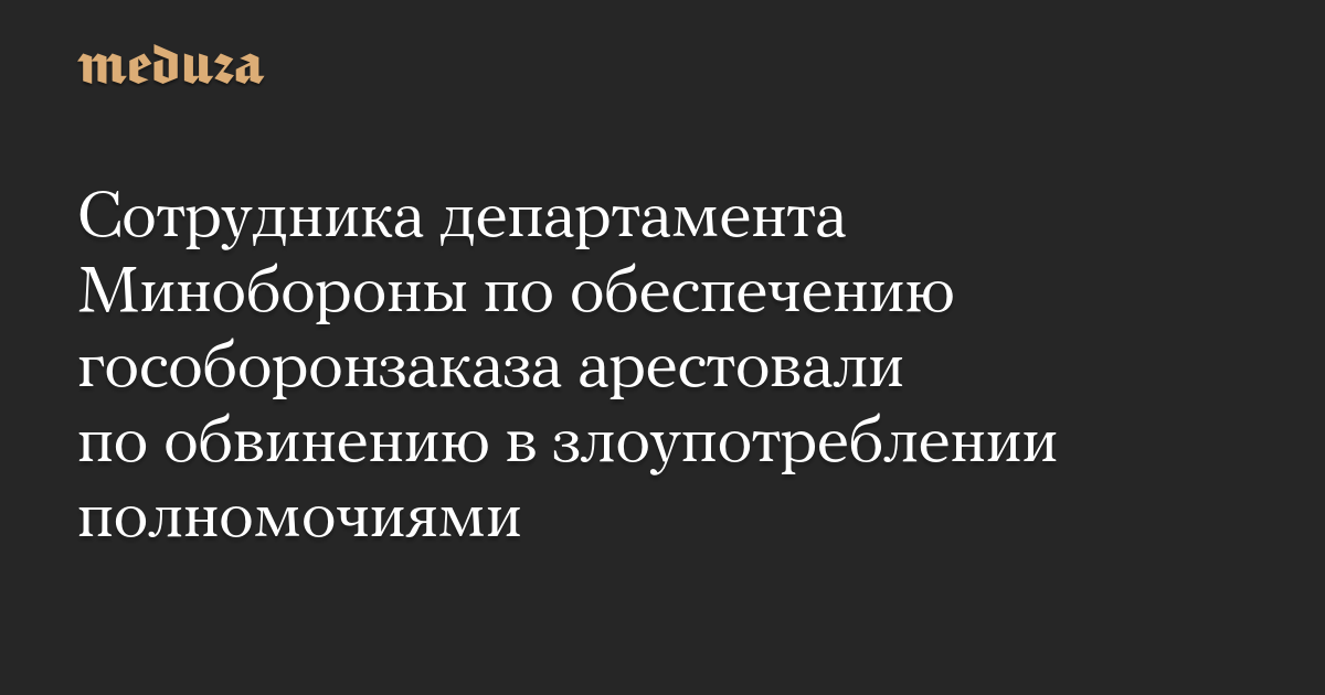 Сотрудника департамента Минобороны по обеспечению гособоронзаказа арестовали по обвинению в злоупотреблении полномочиями
