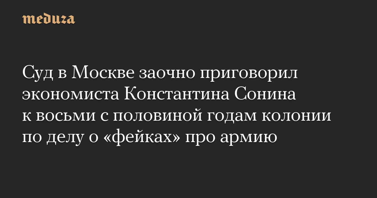 Суд в Москве заочно приговорил экономиста Константина Сонина к восьми с половиной годам колонии по делу о «фейках» про армию