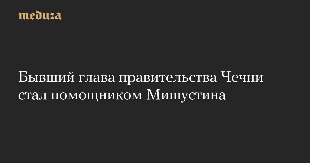 Премьер-министр России Михаил Мишустин назначил бывшего председателя правительства Чечни Муслима Хучиева своим помощником. Распоряжение об этом опубликовал глава Чечни Рамзан Кадыров. На сайте правительства документ пока не опубликован.