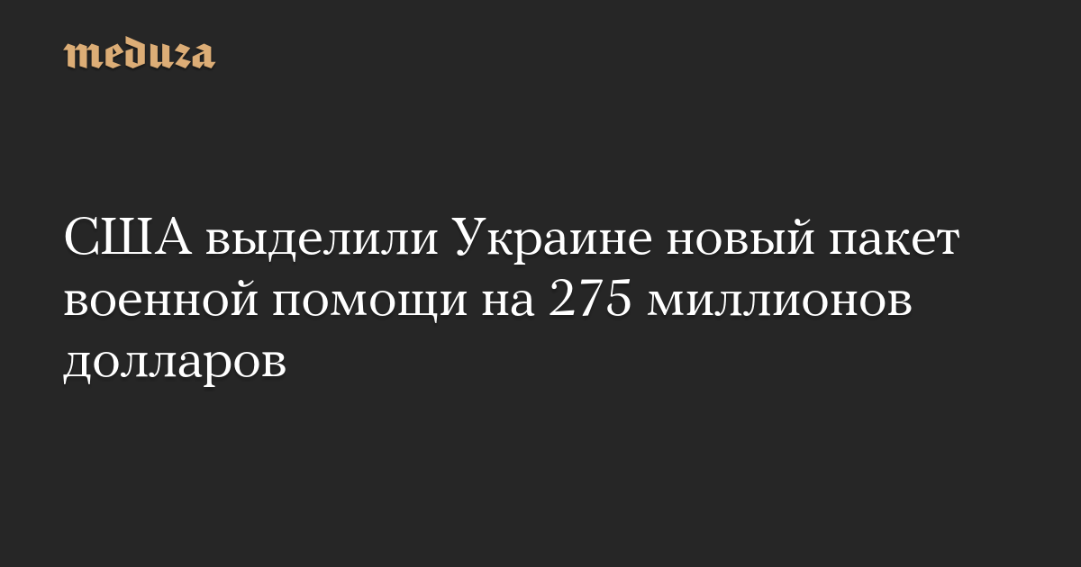 Министерство обороны США объявило, что выделяет Украине новый пакет военной помощи на сумму 275 миллионов долларов.