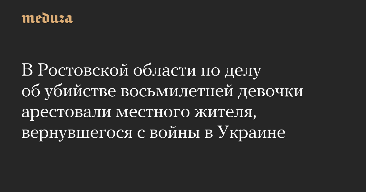 В Ростовской области по делу об убийстве восьмилетней девочки арестовали местного жителя, вернувшегося с войны в Украине
