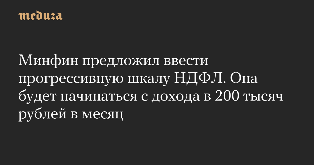 Минфин предложил ввести прогрессивную шкалу НДФЛ. Она будет начинаться с дохода в 200 тысяч рублей в месяц
