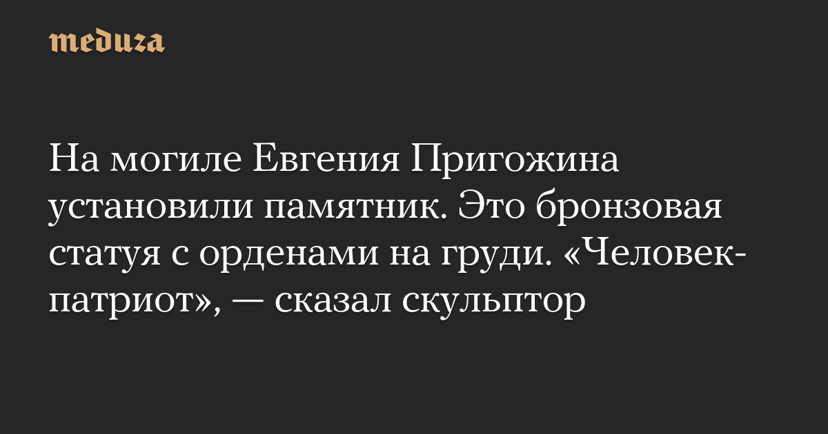 На могиле Евгения Пригожина установили памятник. Это бронзовая статуя с орденами на груди. «Человек-патриот», — сказал скульптор