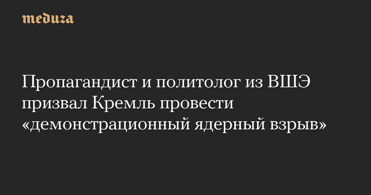Пропагандист и политолог из ВШЭ призвал Кремль провести «демонстрационный ядерный взрыв»