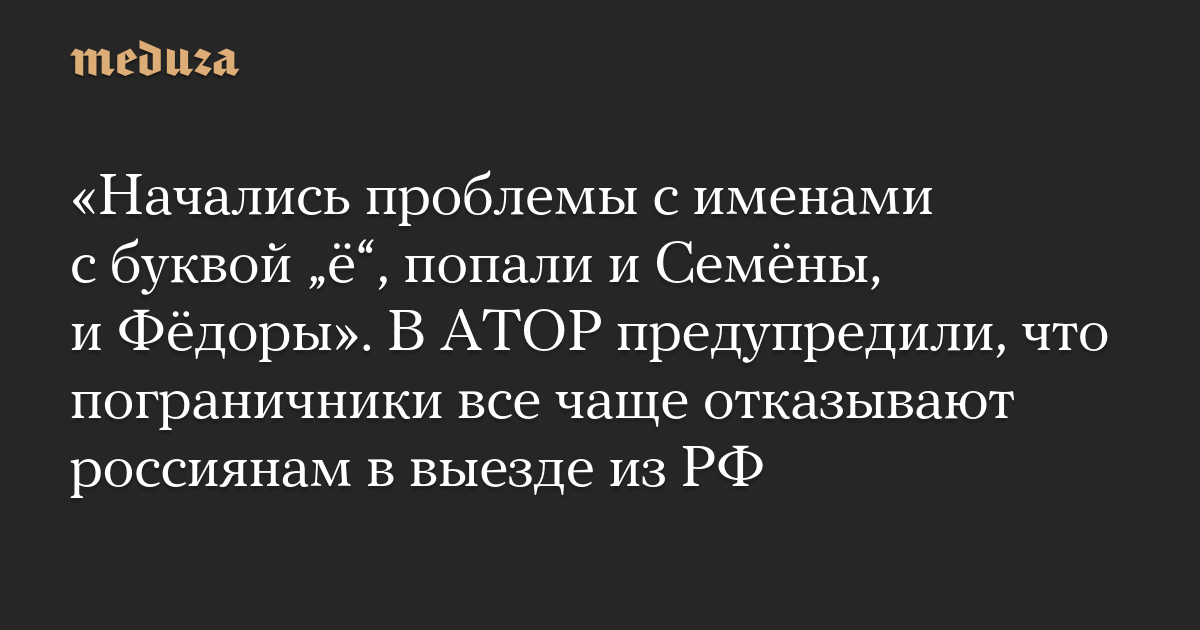 «Начались проблемы с именами с буквой „ё“, попали и Семёны, и Фёдоры». В АТОР предупредили, что пограничники все чаще отказывают россиянам в выезде из РФ