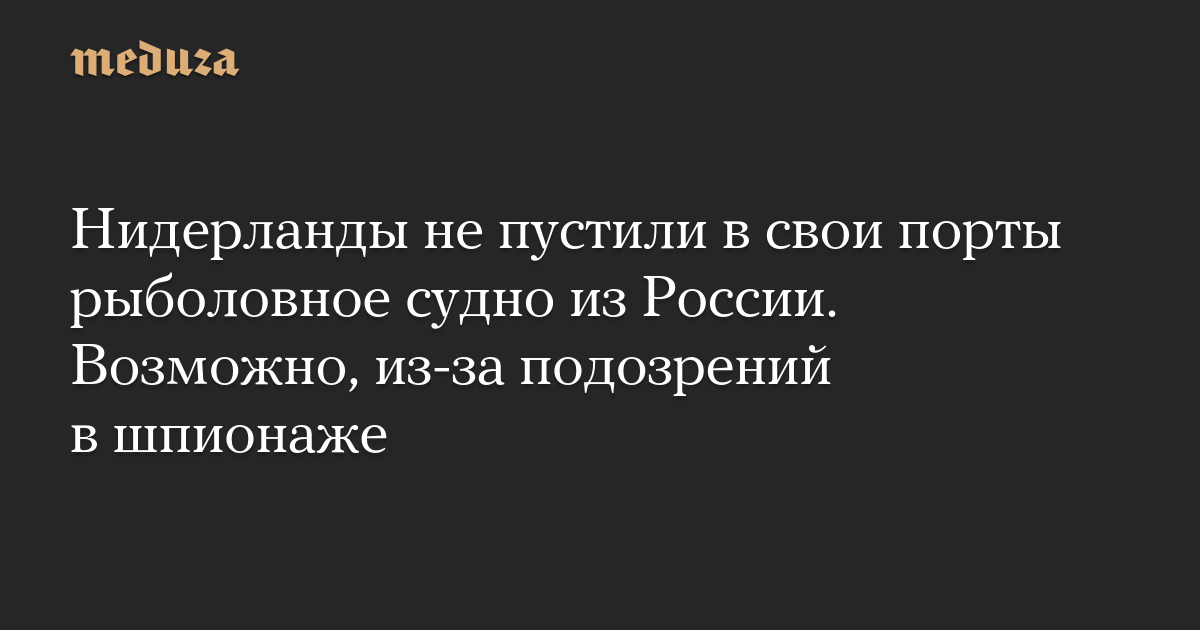 Нидерланды не пустили в свои порты рыболовное судно из России. Возможно, из-за подозрений в шпионаже