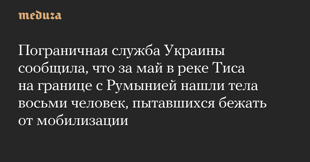 Пограничная служба Украины сообщила, что за май в реке Тиса на границе с Румынией нашли тела восьми человек, пытавшихся бежать от мобилизации