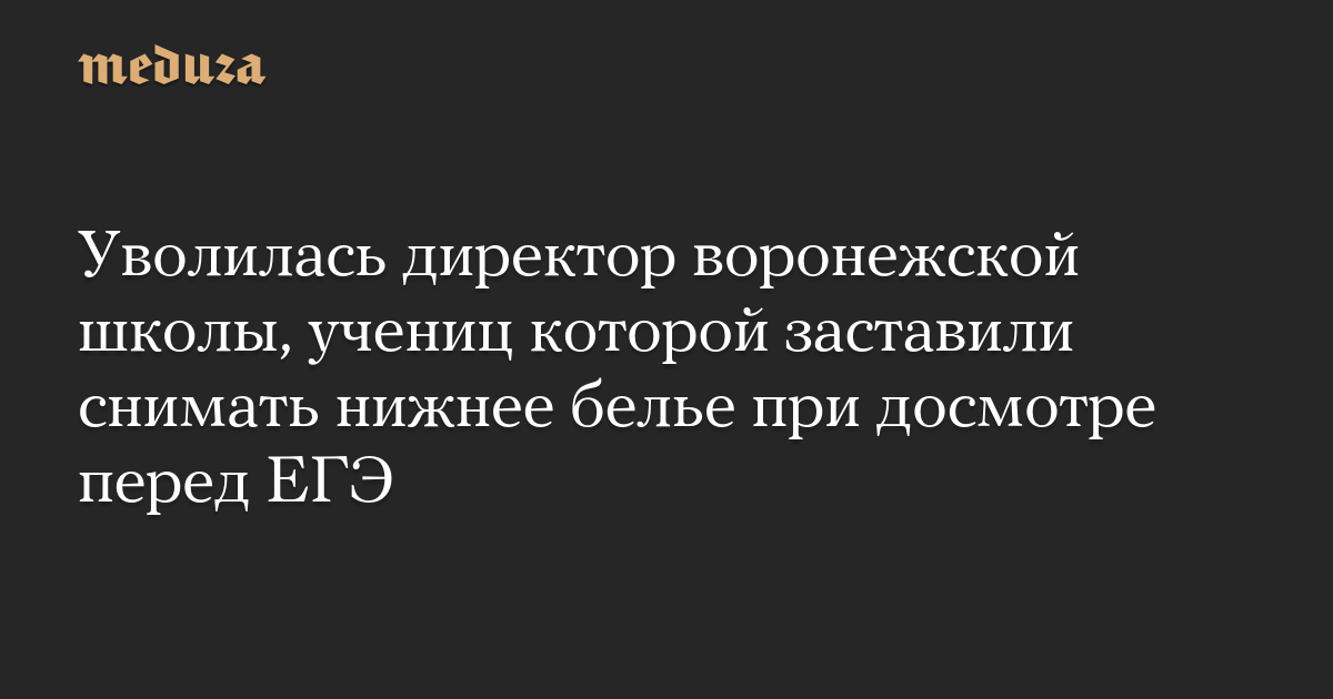 Директор школы в Воронеже, учениц которой во время досмотра перед единым госэкзаменом по русскому языку заставили снимать нижнее белье, покинула свой пост, пишет издание Voronezh1.ru.