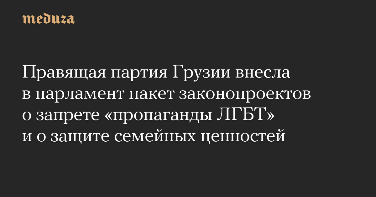 Правящая партия Грузии внесла в парламент пакет законопроектов о запрете «пропаганды ЛГБТ» и о защите семейных ценностей