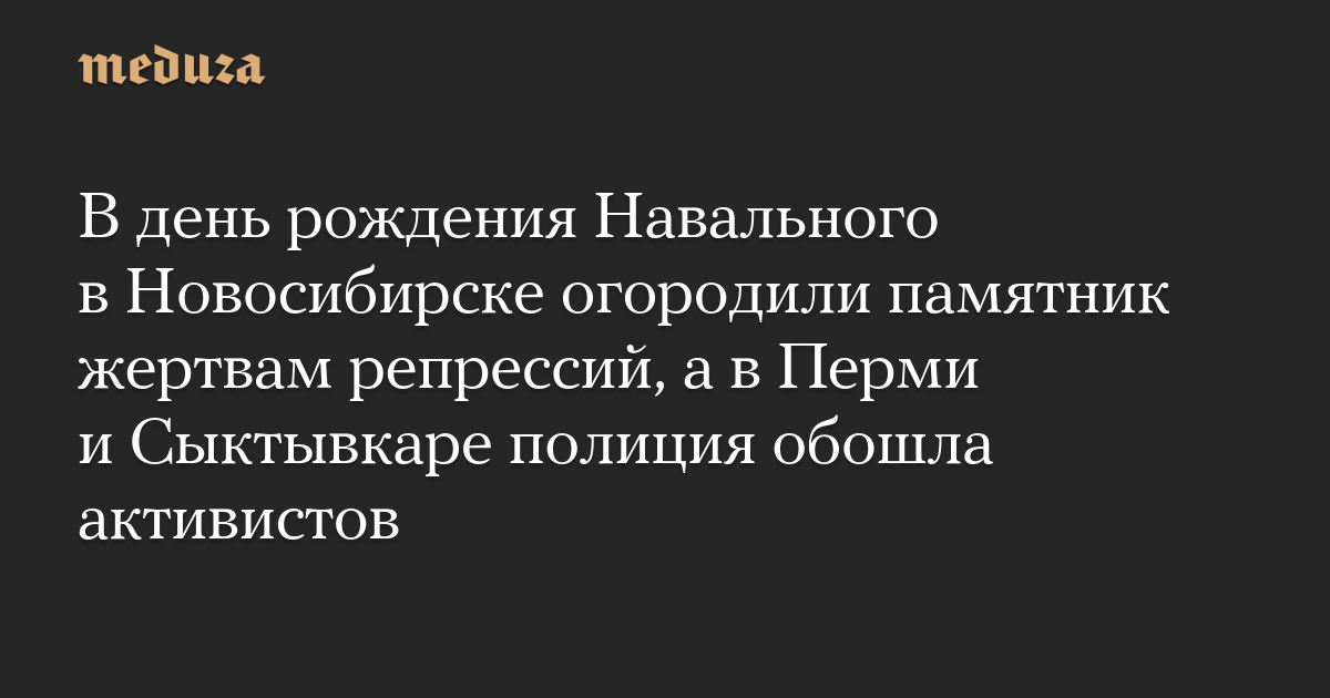В день рождения Навального в Новосибирске огородили памятник жертвам репрессий, а в Перми и Сыктывкаре полиция обошла активистов