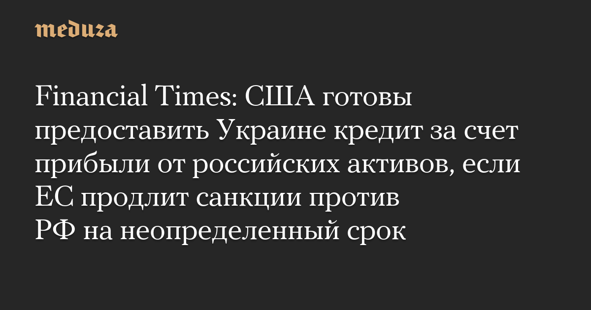 Financial Times: США готовы предоставить Украине кредит за счет прибыли от российских активов, если ЕС продлит санкции против РФ на неопределенный срок