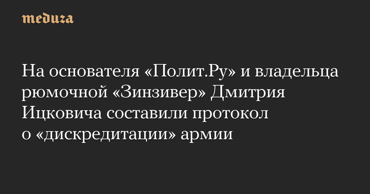 На основателя «Полит.Ру» и владельца рюмочной «Зинзивер» Дмитрия Ицковича составили протокол о «дискредитации» армии
