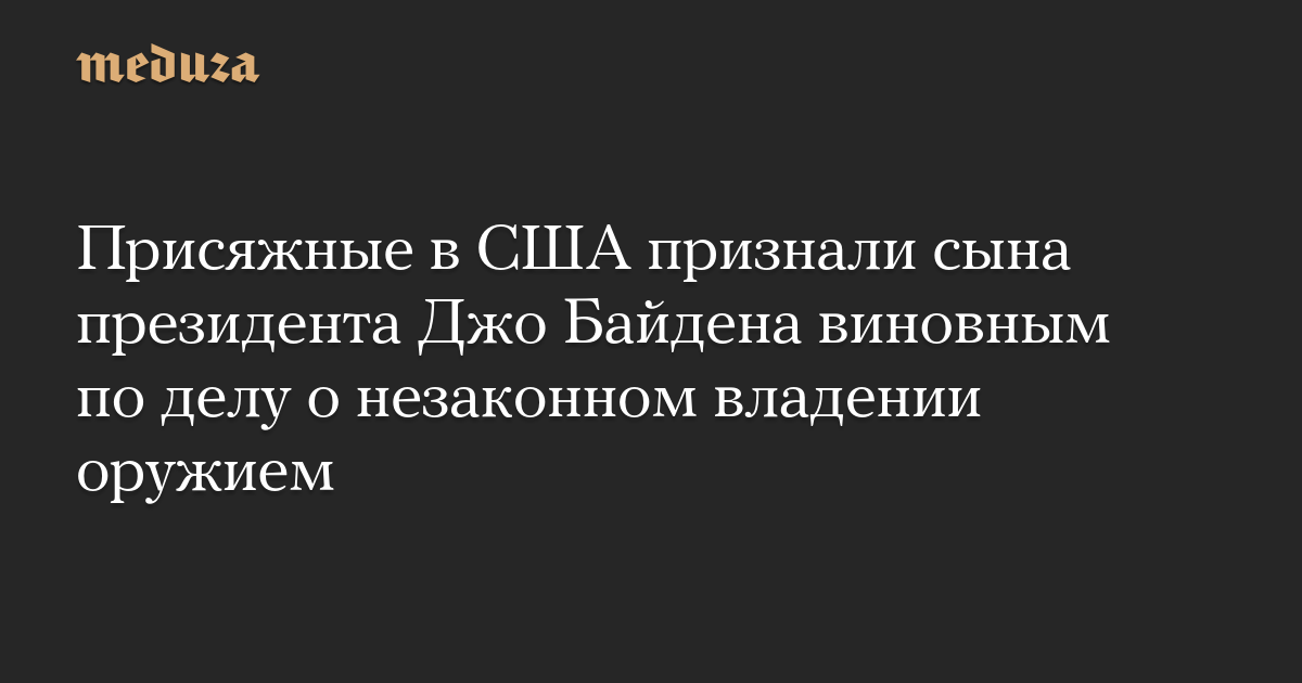 Присяжные в США признали сына президента Джо Байдена виновным по делу о незаконном владении оружием