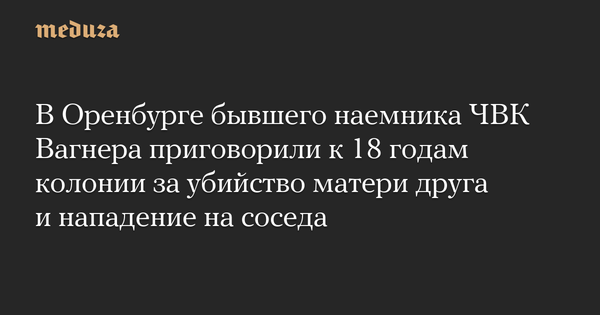 В Оренбурге бывшего наемника ЧВК Вагнера приговорили к 18 годам колонии за убийство матери друга и нападение на соседа