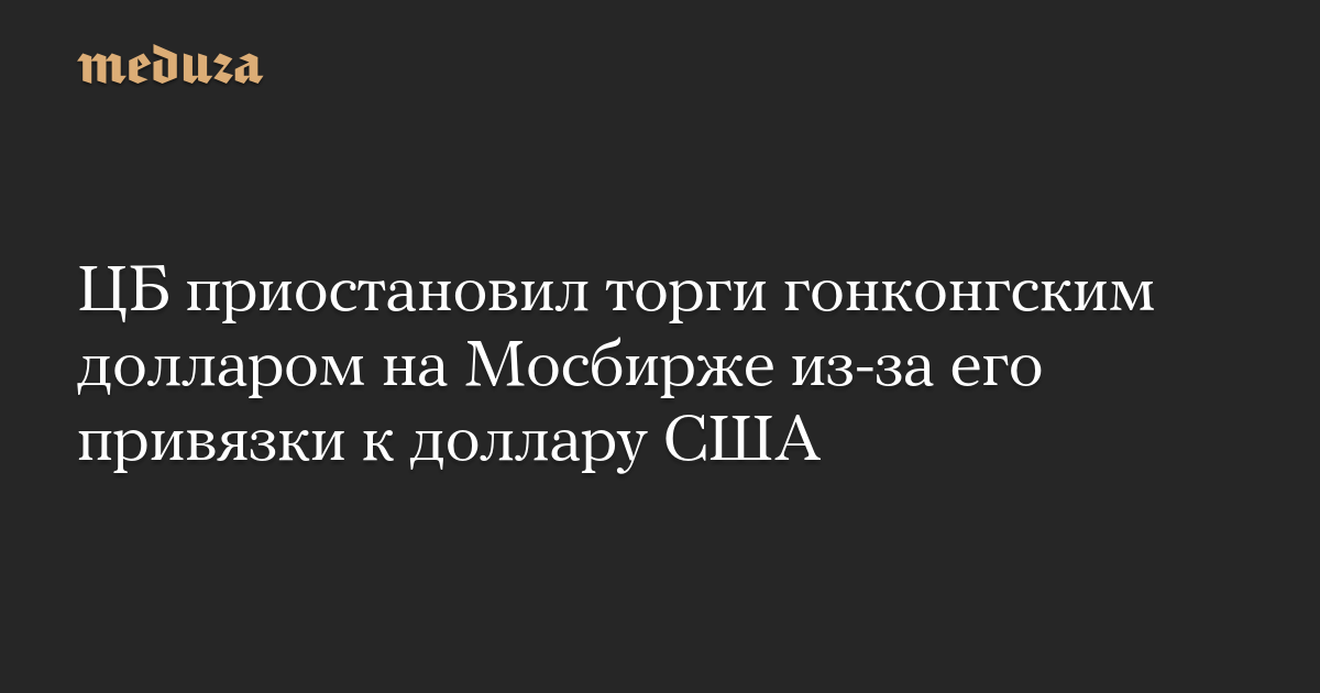 ЦБ приостановил торги гонконгским долларом на Мосбирже из-за его привязки к доллару США