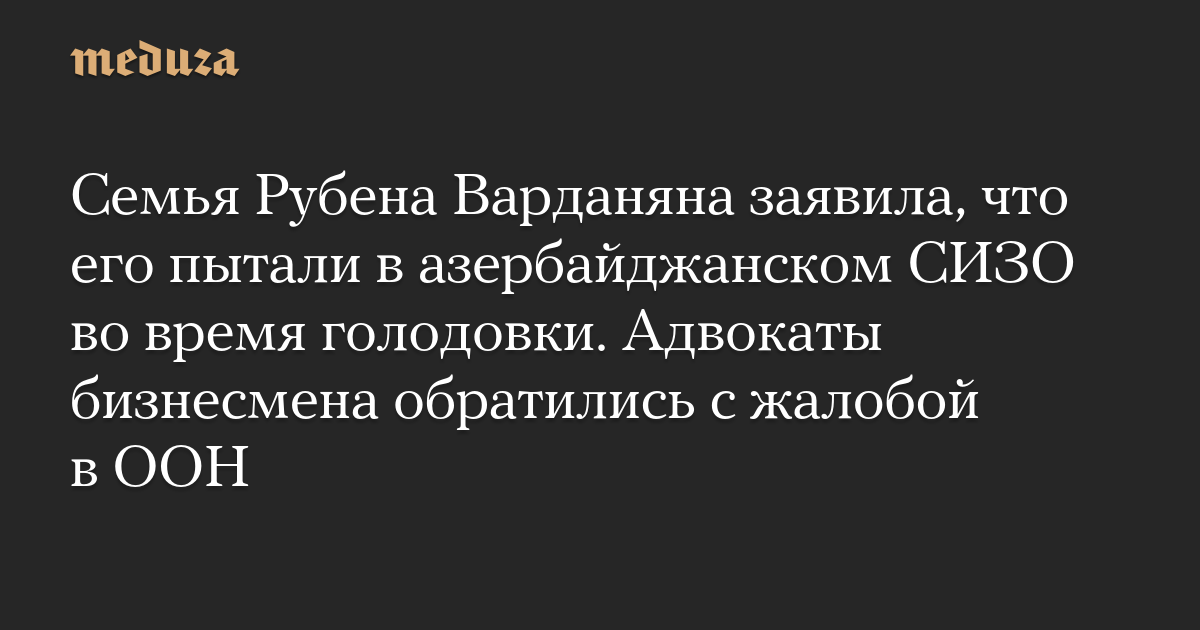 Семья Рубена Варданяна заявила, что его пытали в азербайджанском СИЗО во время голодовки. Адвокаты бизнесмена обратились с жалобой в ООН