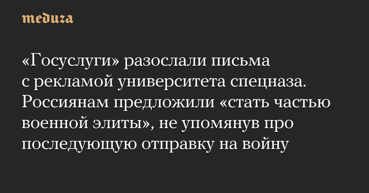 «Госуслуги» разослали письма с рекламой университета спецназа. Россиянам предложили «стать частью военной элиты», не упомянув про последующую отправку на войну