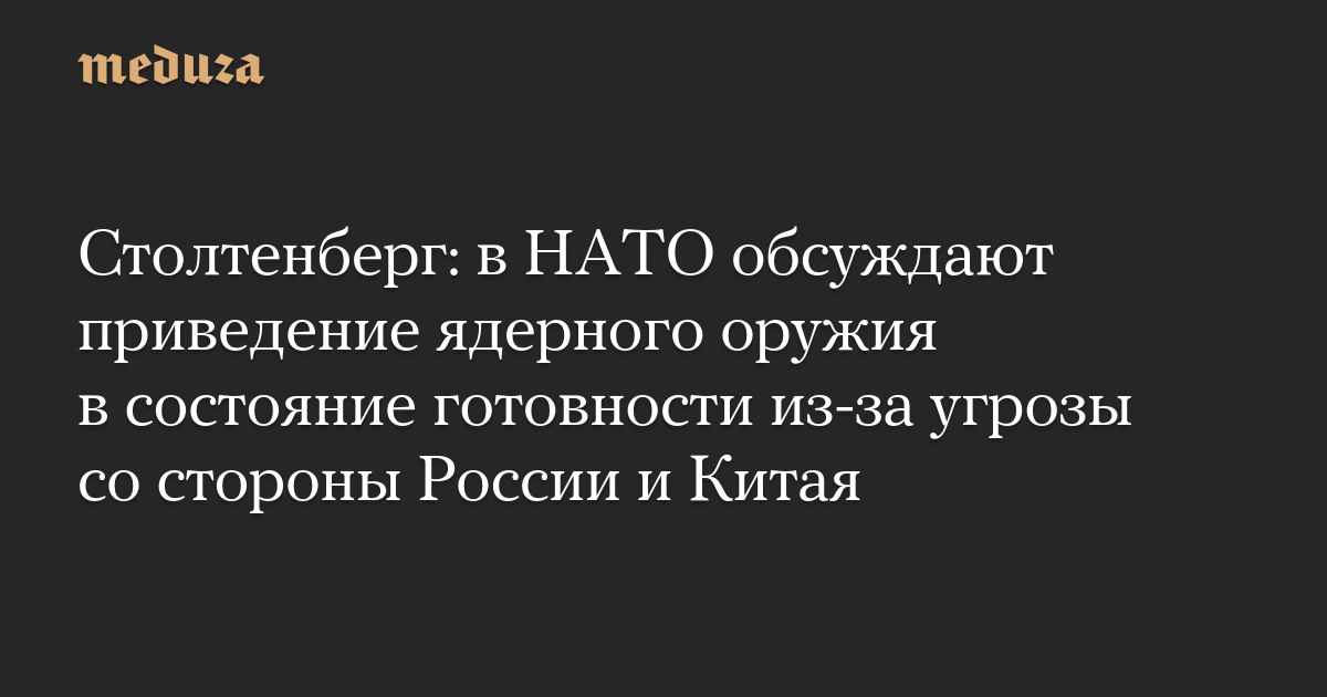 Столтенберг: в НАТО обсуждают приведение ядерного оружия в состояние готовности из-за угрозы со стороны России и Китая