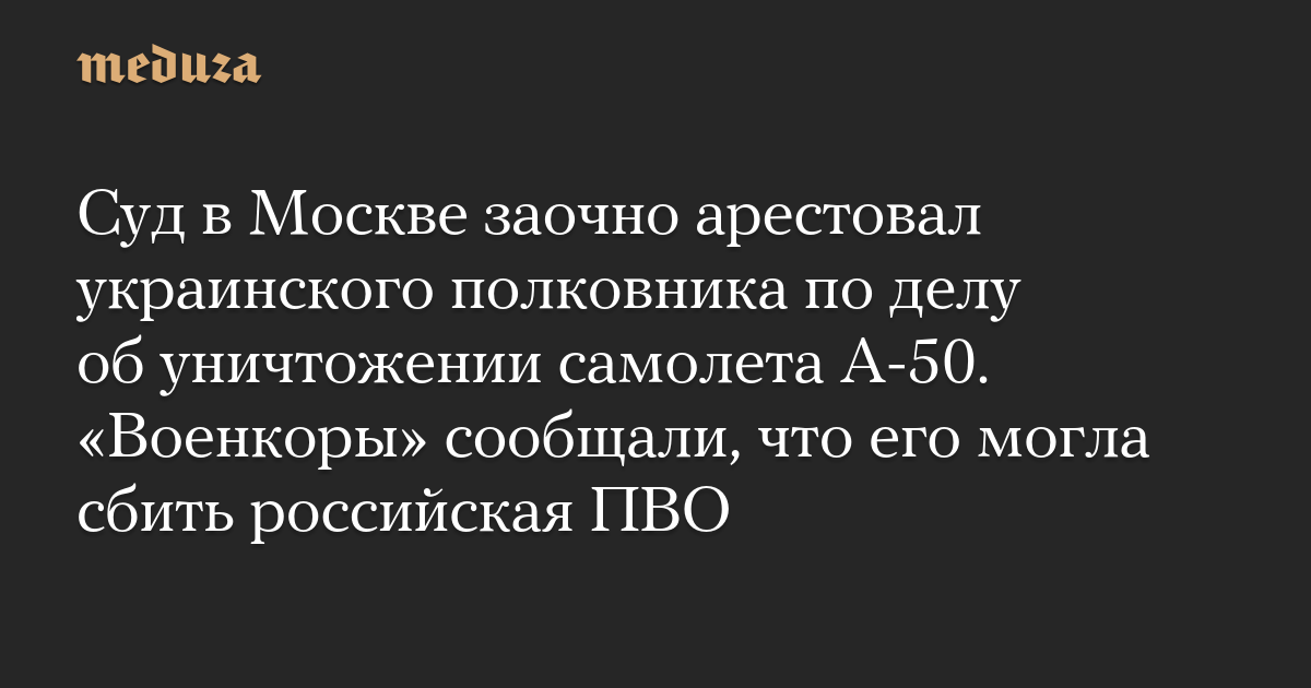 Суд в Москве заочно арестовал украинского полковника по делу об уничтожении самолета А-50. «Военкоры» сообщали, что его могла сбить российская ПВО
