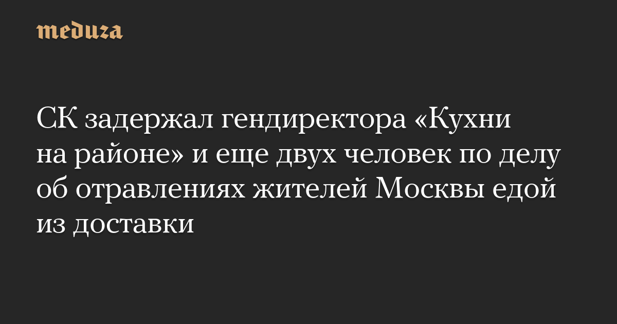 СК задержал гендиректора «Кухни на районе» и еще двух человек по делу об отравлениях жителей Москвы едой из доставки