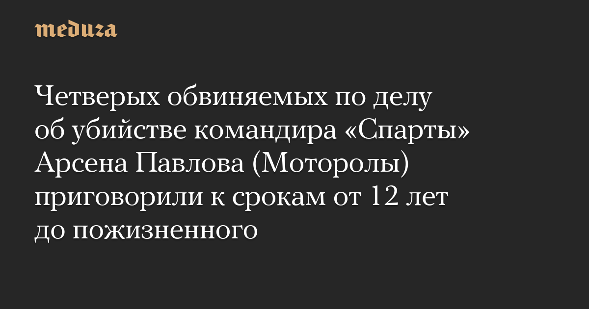 Четверых обвиняемых по делу об убийстве командира «Спарты» Арсена Павлова (Моторолы) приговорили к срокам от 12 лет до пожизненного