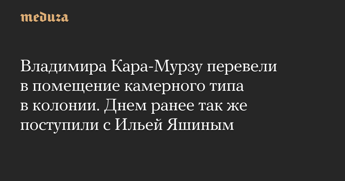 Владимира Кара-Мурзу перевели в помещение камерного типа в колонии. Днем ранее так же поступили с Ильей Яшиным