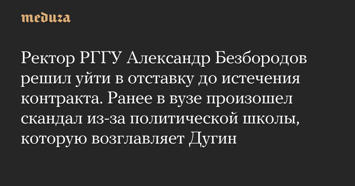 Ректор РГГУ Александр Безбородов решил уйти в отставку до истечения контракта. Ранее в вузе произошел скандал из-за политической школы, которую возглавляет Дугин