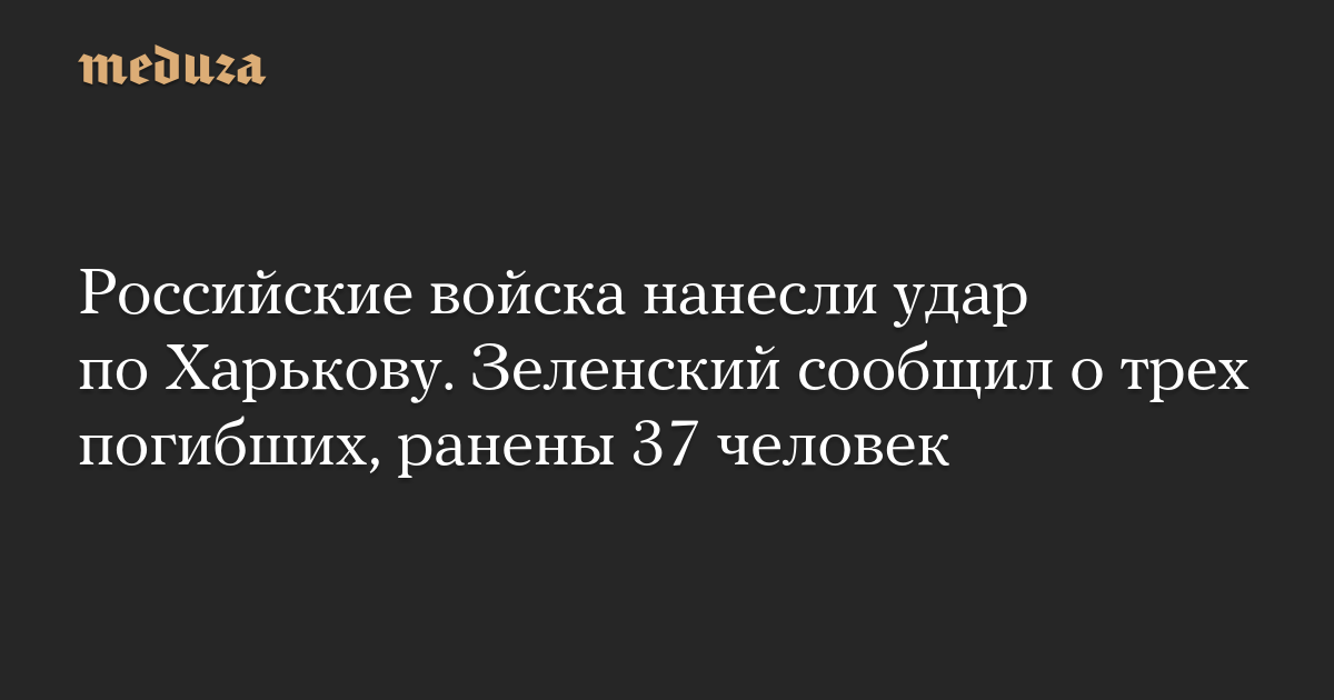 Обновление. Президент Украины Владимир Зеленский заявил, что число погибших увеличилось до трех, пострадали 19 человек. Позже глава Харьковской областной администрации Олег Синегубов уточнил, что пострадали 37 человек
