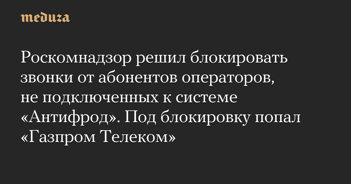 Роскомнадзор решил блокировать звонки от абонентов операторов, не подключенных к системе «Антифрод». Под блокировку попал «Газпром Телеком»