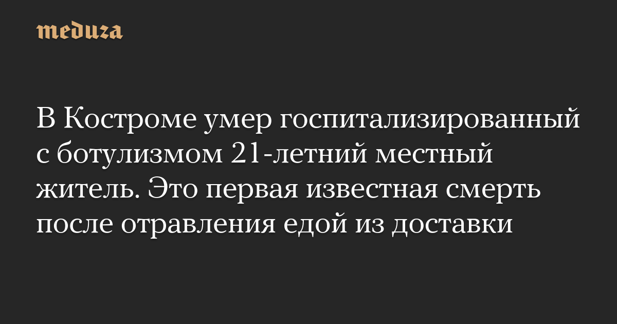 В Костроме умер госпитализированный с ботулизмом 21-летний местный житель. Это первая известная смерть после отравления едой из доставки
