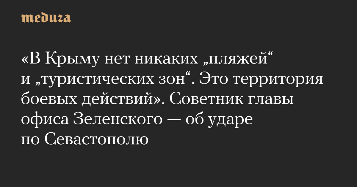 «В Крыму нет никаких „пляжей“ и „туристических зон“. Это территория боевых действий». Советник главы офиса Зеленского — об ударе по Севастополю