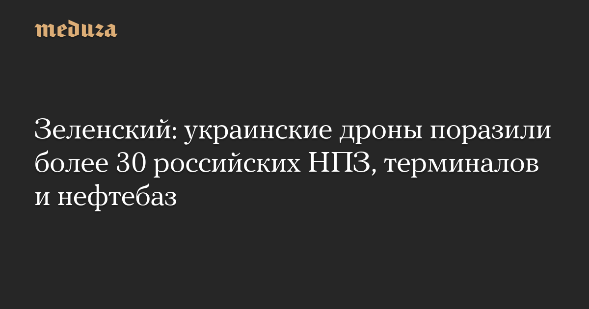 Зеленский: украинские дроны поразили более 30 российских НПЗ, терминалов и нефтебаз