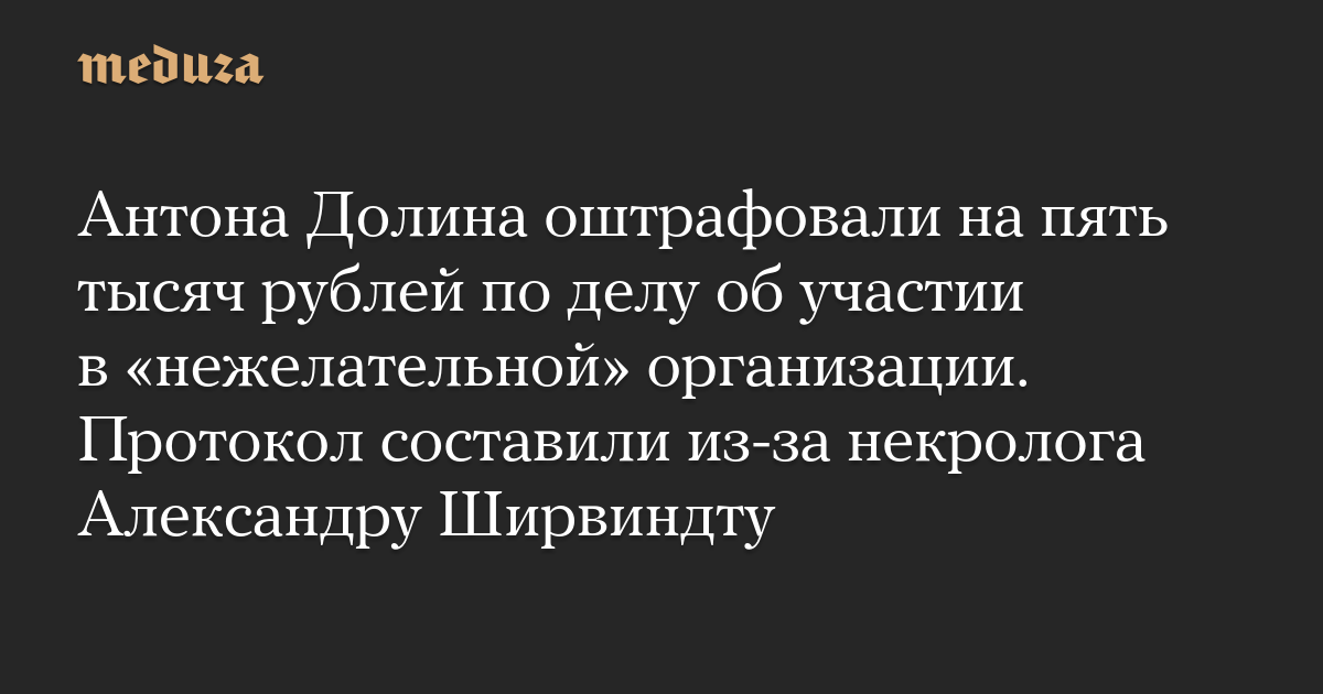 Антона Долина оштрафовали на пять тысяч рублей по делу об участии в «нежелательной» организации. Протокол составили из-за некролога Александру Ширвиндту