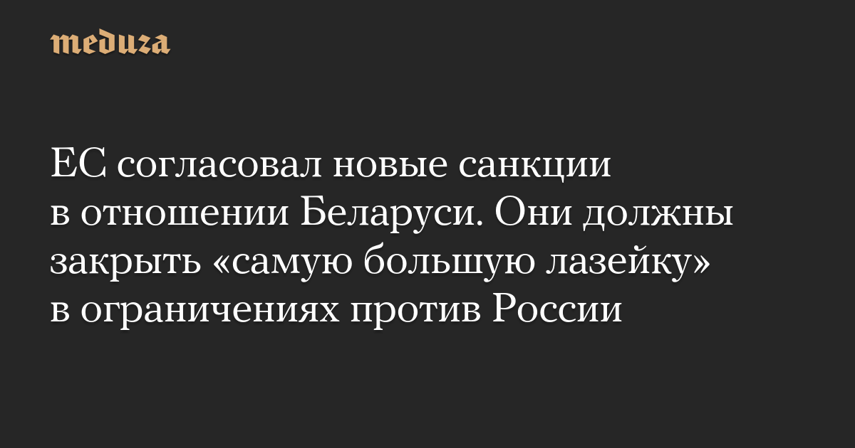 ЕС согласовал новые санкции в отношении Беларуси. Они должны закрыть «самую большую лазейку» в ограничениях против России