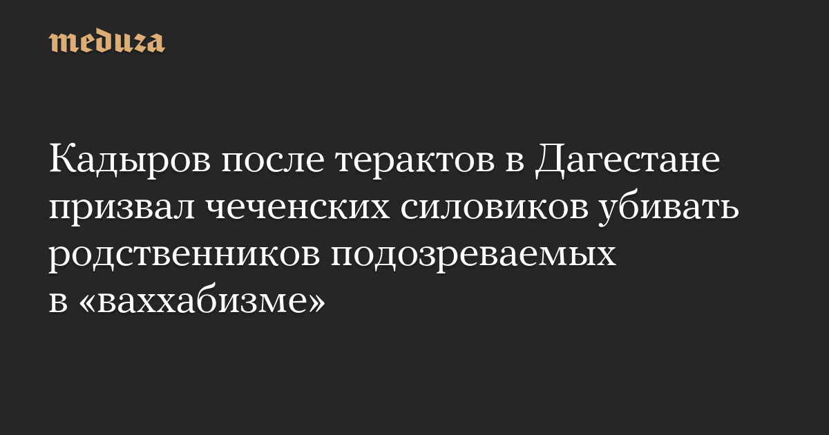 Кадыров после терактов в Дагестане призвал чеченских силовиков убивать родственников подозреваемых в «ваххабизме»