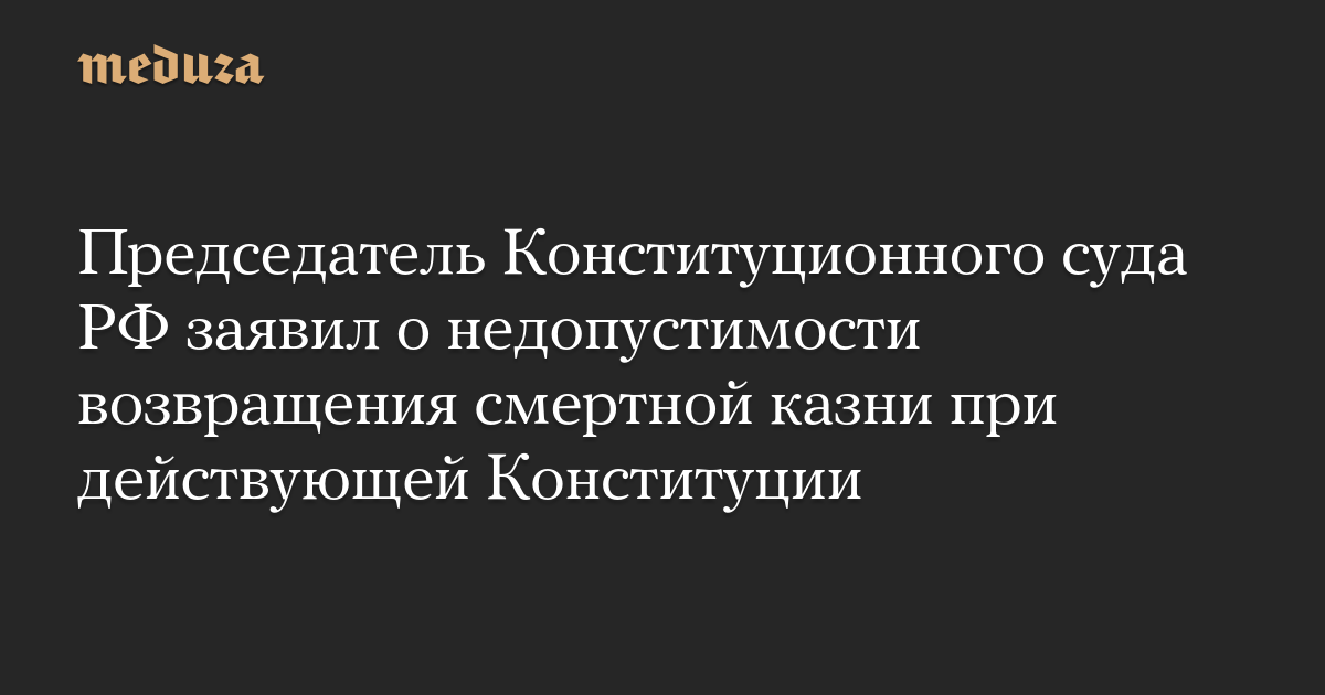 Председатель Конституционного суда РФ заявил о недопустимости возвращения смертной казни при действующей Конституции