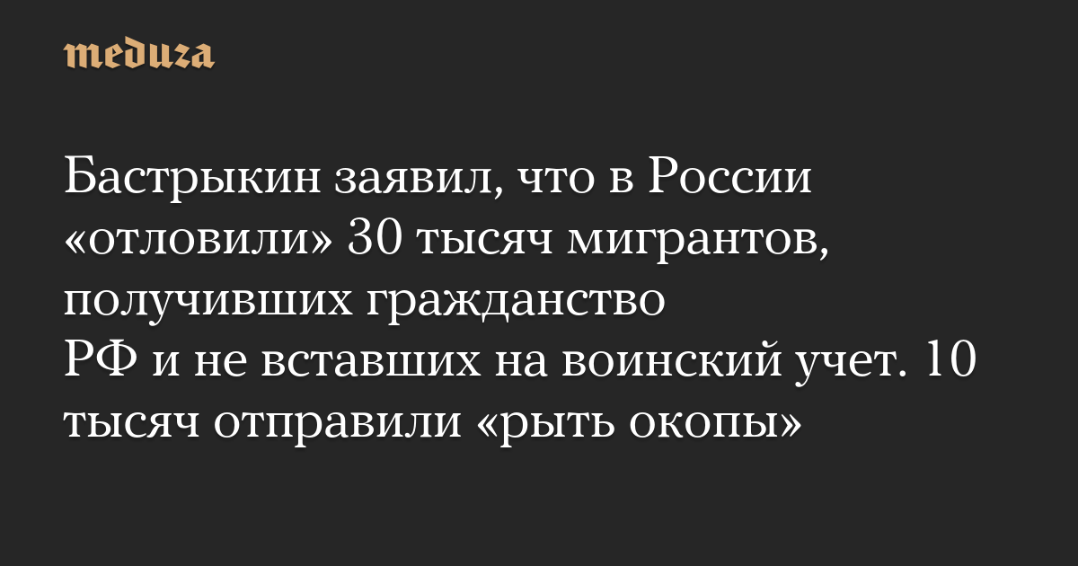 Бастрыкин заявил, что в России «отловили» 30 тысяч мигрантов, получивших гражданство РФ и не вставших на воинский учет. 10 тысяч отправили «рыть окопы»