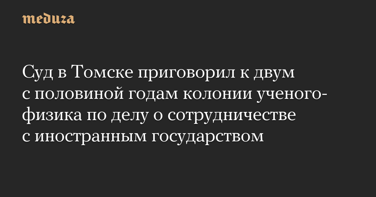 Суд в Томске приговорил к двум с половиной годам колонии ученого-физика по делу о сотрудничестве с иностранным государством