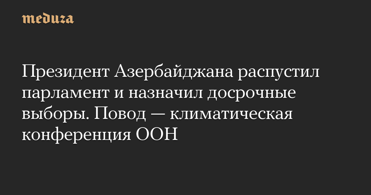 Президент Азербайджана распустил парламент и назначил досрочные выборы. Повод — климатическая конференция ООН