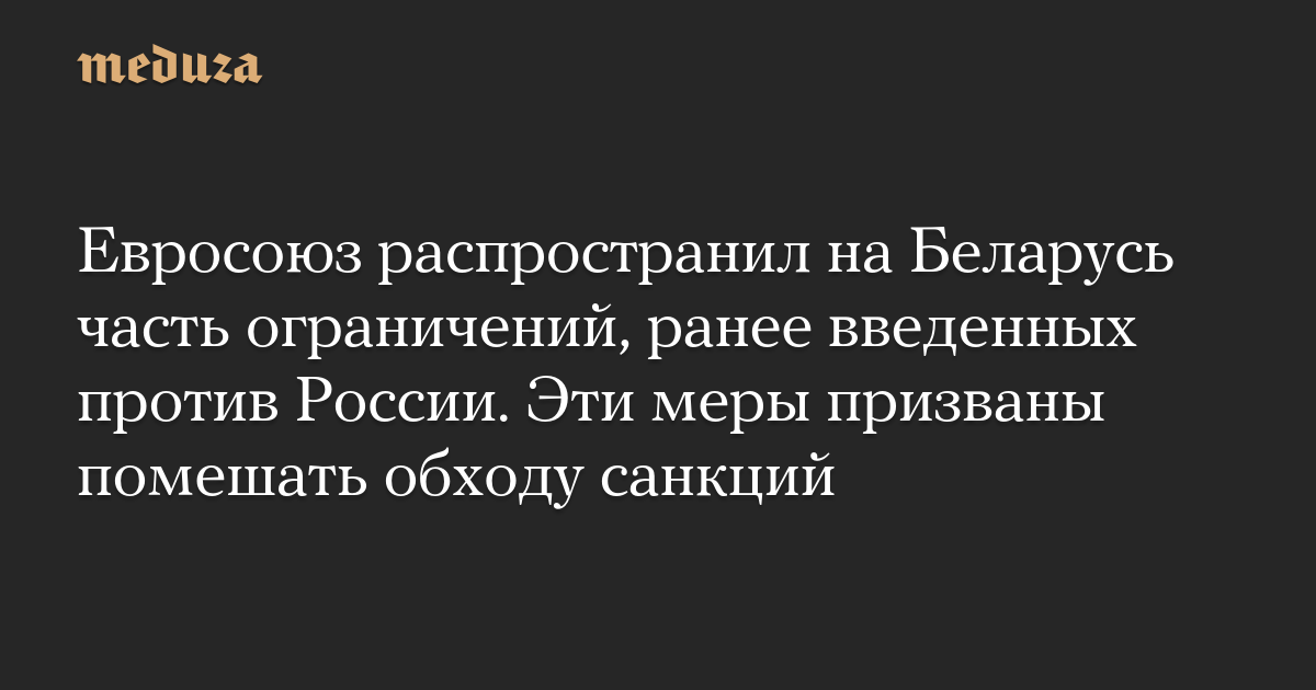 Евросоюз распространил на Беларусь часть ограничений, ранее введенных против России. Эти меры призваны помешать обходу санкций