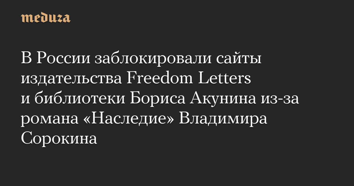 В России заблокировали сайты издательства Freedom Letters и библиотеки Бориса Акунина из-за романа «Наследие» Владимира Сорокина