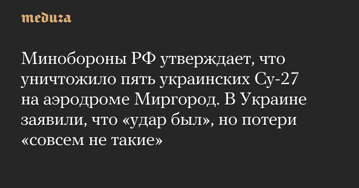 Минобороны РФ утверждает, что уничтожило пять украинских Су-27 на аэродроме Миргород. В Украине заявили, что «удар был», но потери «совсем не такие»