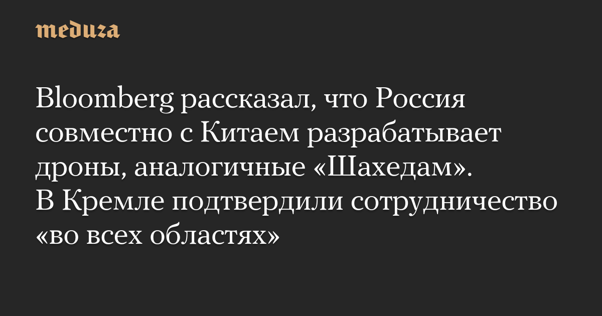 Bloomberg рассказал, что Россия совместно с Китаем разрабатывает дроны, аналогичные «Шахедам». В Кремле подтвердили сотрудничество «во всех областях»