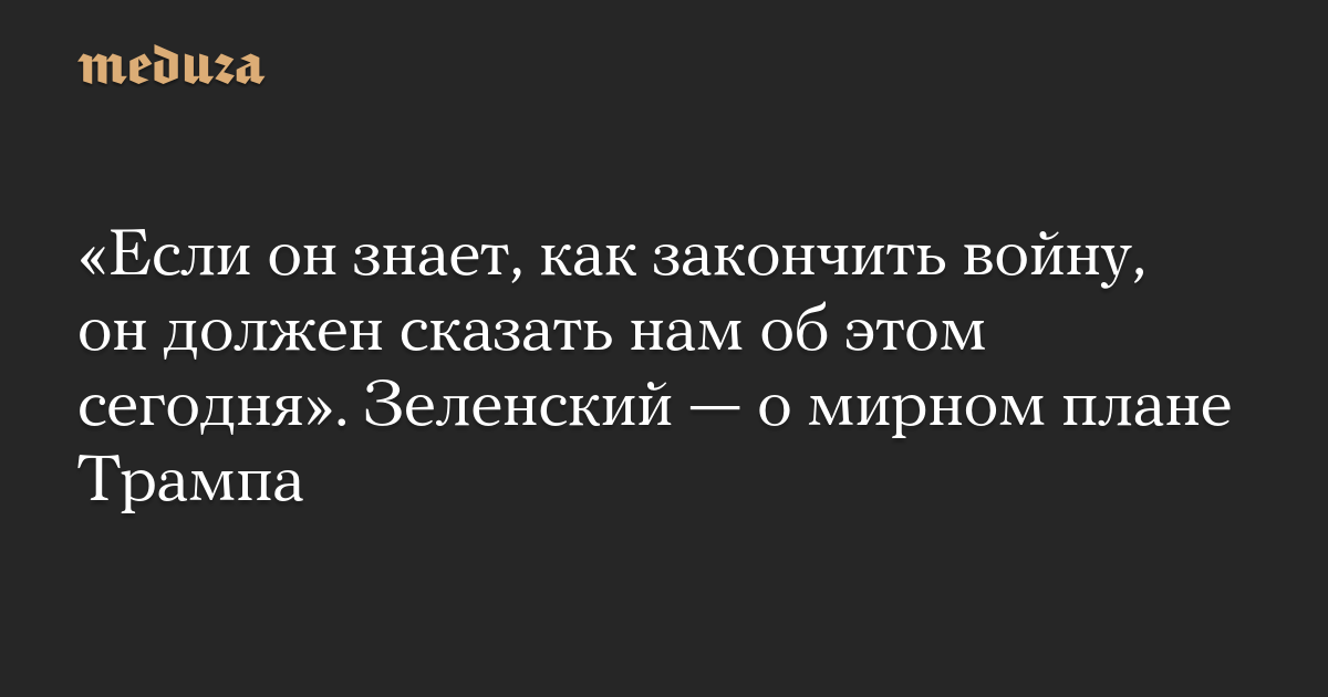 «Если он знает, как закончить войну, он должен сказать нам об этом сегодня». Зеленский — о мирном плане Трампа