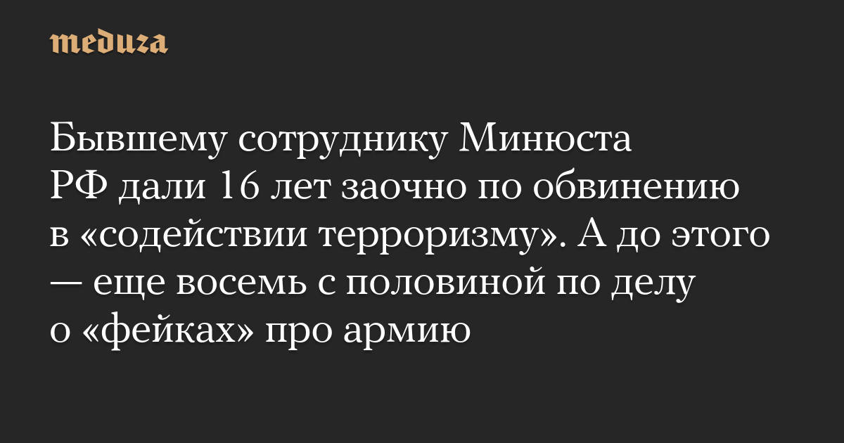 Бывшему сотруднику Минюста РФ дали 16 лет заочно по обвинению в «содействии терроризму». А до этого — еще восемь с половиной по делу о «фейках» про армию